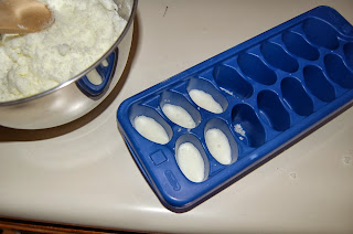 Use your finger (or some other super tool) to Pack the mixture hard into the trays.